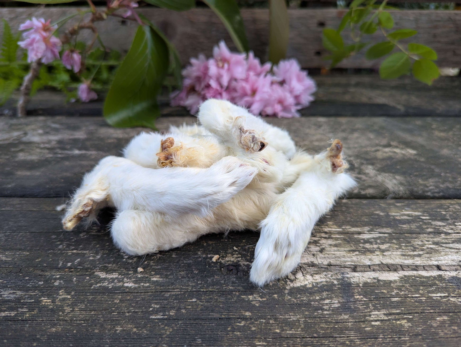 Hairy Rabbit Feet are the paw-fect snack for pups with allergies or sensitivities. These protein-packed treats not only help keep those pearly whites clean but also contain all the necessary nutrients for a healthy diet. Plus, the naturally crunchy texture is sure to satisfy your furry friend's urge to chew. And with their quirky hair still intact, these feet may even help rid your doggo of unwanted parasites! We only use the best ingredients and keep things au naturel, making these treats a guilt-free addition to your pup's daily routine.